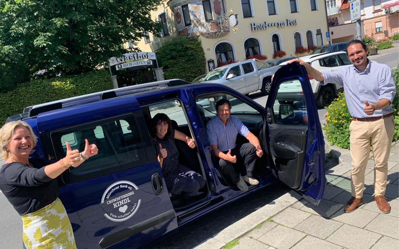 Die Nachbarschaftshilfe Unterföhring engagiert sich vor allem für ältere und hilfsbedürftige Menschen, die in der Gemeinde im Nordosten von München leben. Dafür ist der Verein auf Spenden angewiesen. In der Corona-Krise stieg der Hilfsbedarf hier sehr an, etwa bei Arzt- und Krankenfahrten oder auch beim „Unterföhringer Tisch“, der Bedürftige mit Essen versorgt. Vor allem die Menschen, die sogenannten Risikogruppen angehören, sollten weiterhin die Angebote der Nachbarschaftshilfe wahrnehmen können, ohne sich in die Öffentlichkeit begeben zu müssen. Deswegen machten sich die engagierten Unterföhringer auf die Suche nach einem weiteren gebrauchten Fahrzeug, das ihnen bei der Arbeit helfen konnte. Unterstützt hat sie dabei die Crowdfunding-Plattform der Münchner Bank eG. Das Projekt „Vier Räder für hilfebedürftige Unterföhringer“ wurde dort vorgestellt und beworben. Die Nachbarschaftshilfe Unterföhring konnte so fast 10.000 Euro an Spenden sammeln und damit das Auto finanzieren.