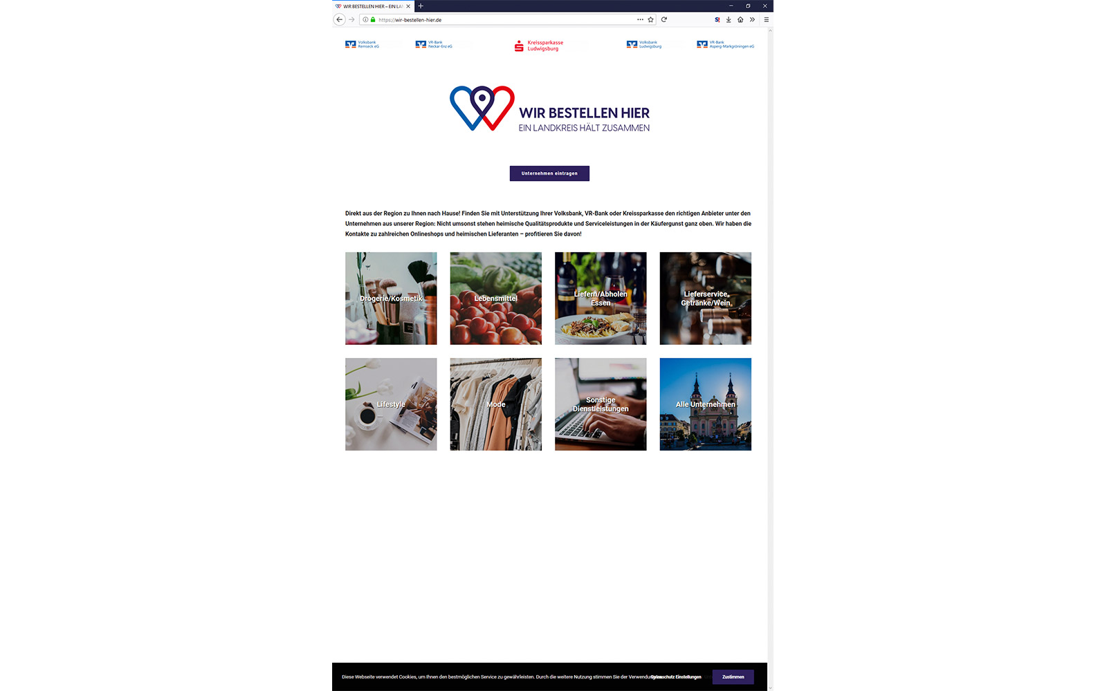 Hof- und Unverpackt-Läden, Bäckereien und Fleischereien, Kosmetikstudios und Brauereien, Modegeschäfte und Optiker: Im Landkreis Ludwigsburg hat ein regionales Branchenportal in der Corona-Krise alle interessierten Unternehmen aufgenommen, die Online-Shops oder Liefer- beziehungsweise Abholservices anbieten. Unter der Adresse wir-bestellen-hier.de können die rund 500.000 Einwohner ihre Produkte bestellen und so dabei helfen, den Handel und die Gastronomie zu unterstützen, die durch die Ausgangsbeschränkungen besonders gefährdet waren.