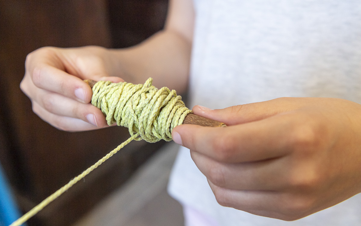 Etwas später dann kommen die ersten Übungen. Die Schülerinnen des Johann-Gottfried-Herder-Gymnasiums aus Merseburg gehen in eine dunkle Kammer und entdecken dort in einer Art Schatzkiste eine Schnur mit zwölf Knoten. Sie rätseln zunächst ein bisschen herum, bis Beate Tippelt ihnen erläutert, dass sie, wenn sie diese in drei, vier und fünf Abschnitte unterteilen und zu einem Dreieck legen, einen rechten Winkel erzeugen können. „Mit diesem einfachen Hilfsmittel wurde damals auch gearbeitet, um den Bau auszurichten.“