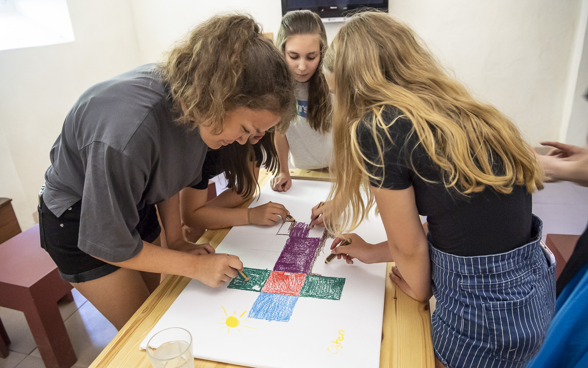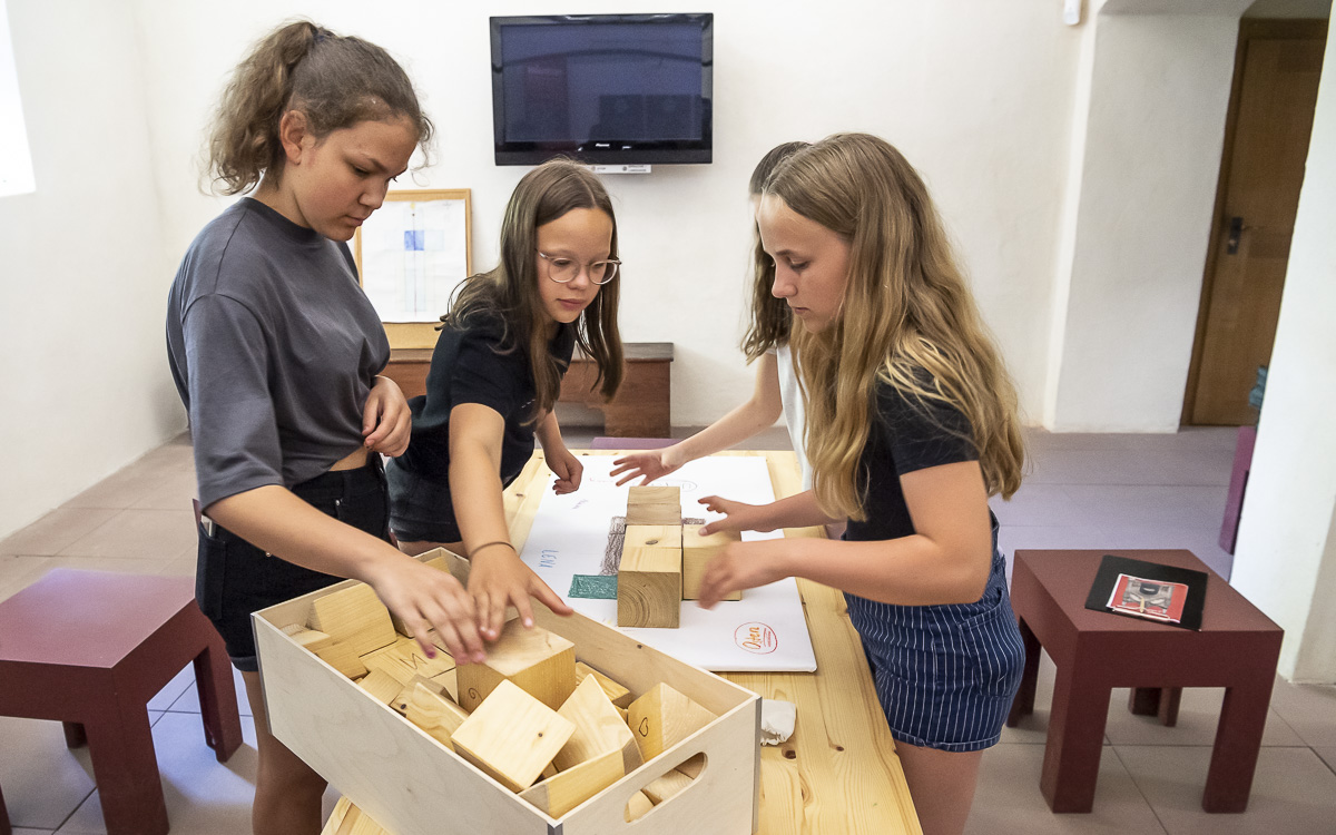 Neben der Mathematik lernen die Kinder aber auch Grundbegriffe der Kirchenarchitektur kennen, Wissen zur Romanik und Gotik, Geschichte und Kunst. Ganz zum Schluss des Programms sammeln sich die jungen Teilnehmerinnen mit Beate Tippelt in einem Raum, in dem sie die letzte Aufgabe lösen sollen. Auf einem großen Blatt Papier zeichnen sie den Grundriss des Doms auf und malen die einzelnen Felder farbig aus. Dann schiebt Beate Tippelt eine Kiste mit Holzklötzen heran. „Baut damit den Dom auf dem Grundriss auf“, sagt sie und die Mädchen, die seit Jahren nicht mehr mit Bausteinen spielen, legen direkt los. In wenigen Minuten haben sie gemeinsam das Gebäude nachgebaut, inklusive der Erker und Türme. Sie halten kurz inne, schauen ihr Werk an – und reißen es danach wieder ab, damit die nächste Gruppe ebenfalls von Anfang an starten kann. „Das Ganze hat richtig Spaß gemacht“, sagt dann noch Ella, stellvertretend für alle – und dann geht es ins Freibad.